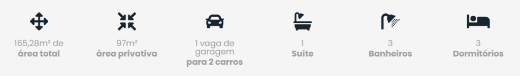 Com 96,96 m² de área privativa da unidade, este apartamento foi projetado para quem valoriza ambientes bem distribuídos, iluminados durante todo o dia (com sol da manhã e da tarde) e com ventilação cruzada, que garante frescor e qualidade do ar em todos os cômodos. A área total de 165,28 m² inclui a vaga de garagem e as áreas comuns do edifício.